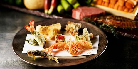 車海老、鱚、雲丹、牛フィレ肉、野菜など